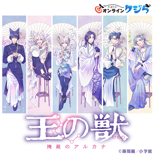 販売期間中に『王の獣』オンラインクジら 第2弾を購入されたお客様の中から抽選で6名様に、藤間先生直筆サイン入りアクリルコースターをプレゼント! ※販売期間中に1つ以上くじを購入された方を対象に抽選を行います。 ※アクリルコースターはB賞と同様のものとなります。キャラクターは選べません。 ※ご当選者にはオンラインクジらにご登録のメールアドレス宛に、宛名の確認のご連絡をさせていただきます。
